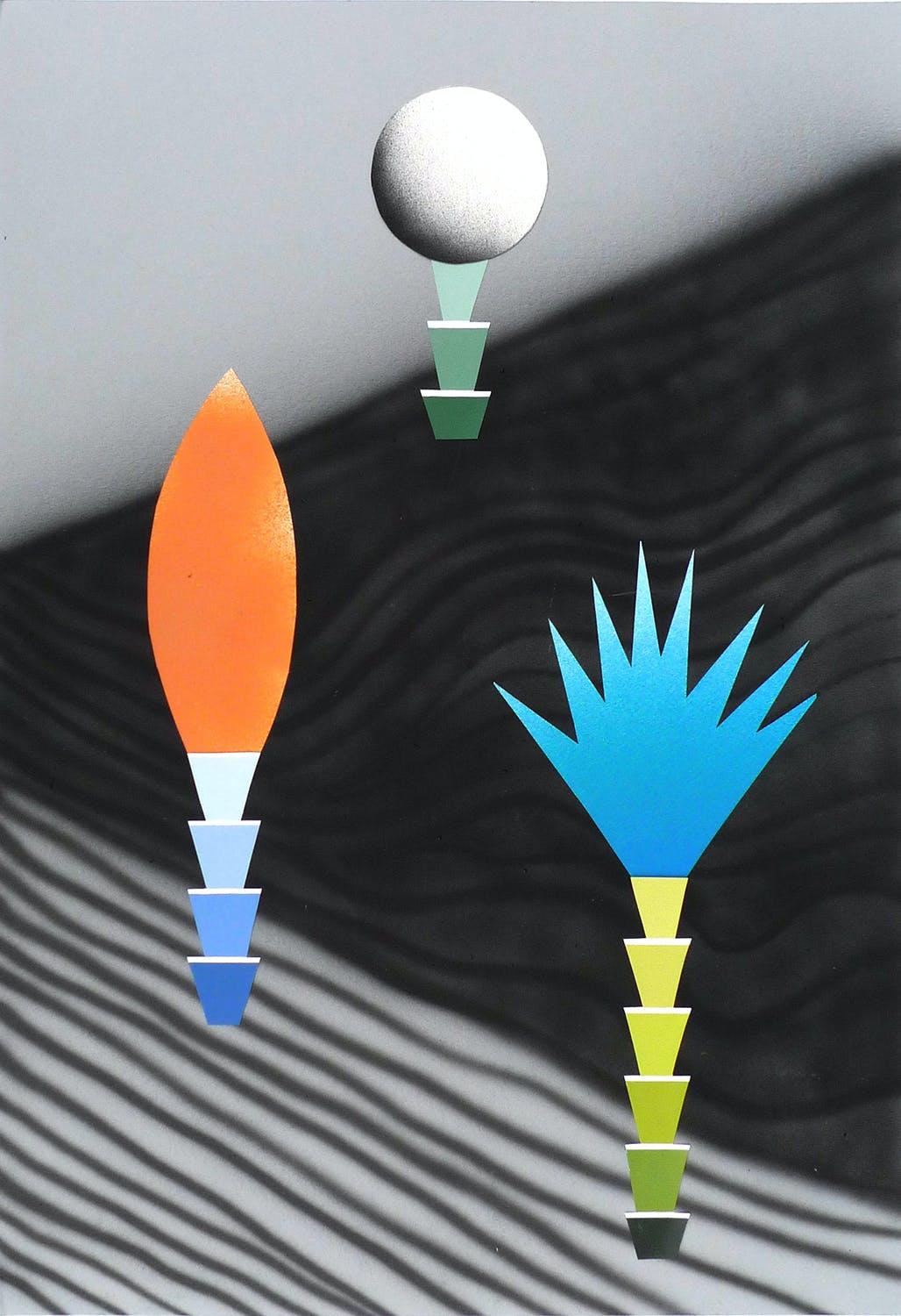 Paper, pastel, airbrush, ink and vinyl on card. 70 x 50cm & 35 x 50cm, 2017.