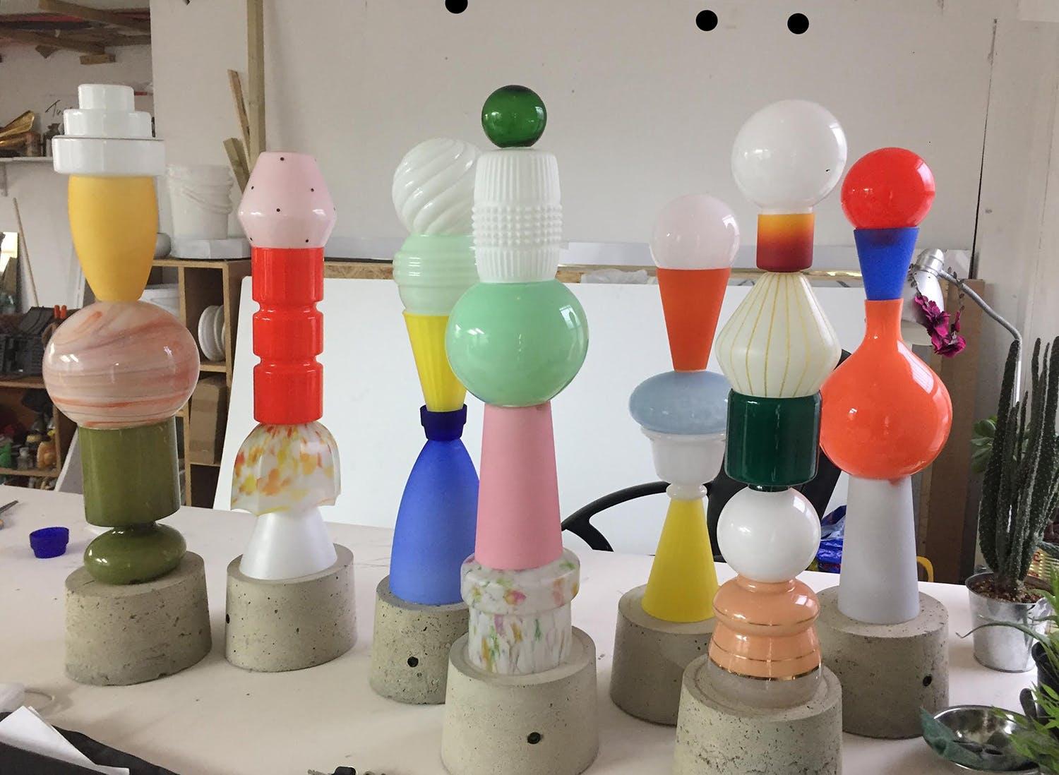 I was invited to display and sell a set of Totem Sculpture Lights at both The Metropolitan Museum of Art store & the Met Breuer store as part of their Ettorre Sottsass restropsective exhibition. Glass, acrylic, concrete, flourescant bulb & electrics. Dimensions variable, 2017.